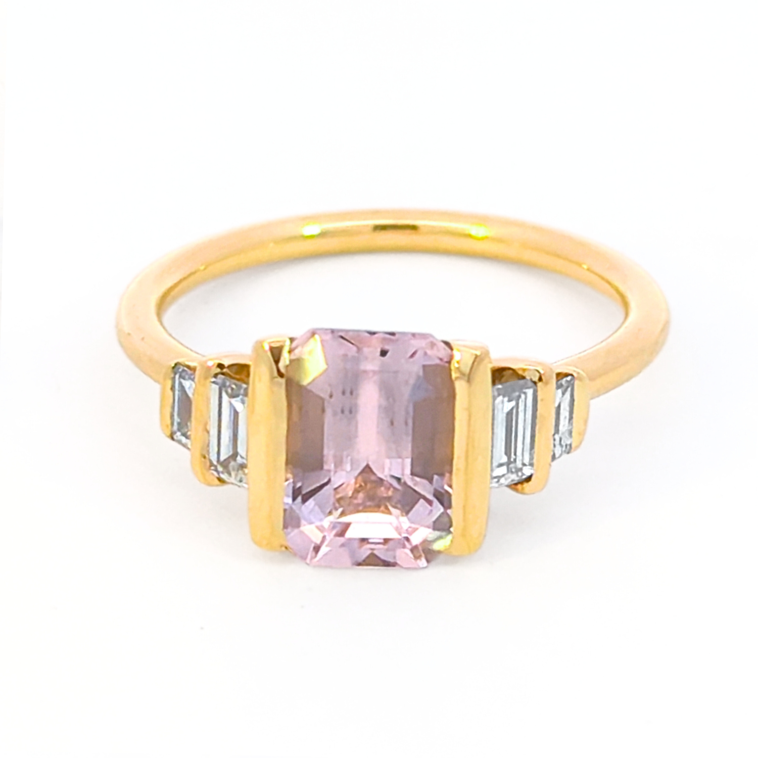 Création - Bague - Or Jaune 18ct - Morganite de Madagascar - Diamants