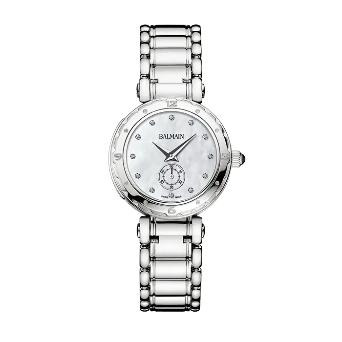 Prix unitaire parB4551.33.85 - Montre Dame - Balmainia - Silver - Acier Inoxydable - Cadran Nacre Blanche - Diamètre 32mm - Verre Saphir - Mouvement Suisse Quartz - Garantie 2ans - Etanche 3atm - Diamants