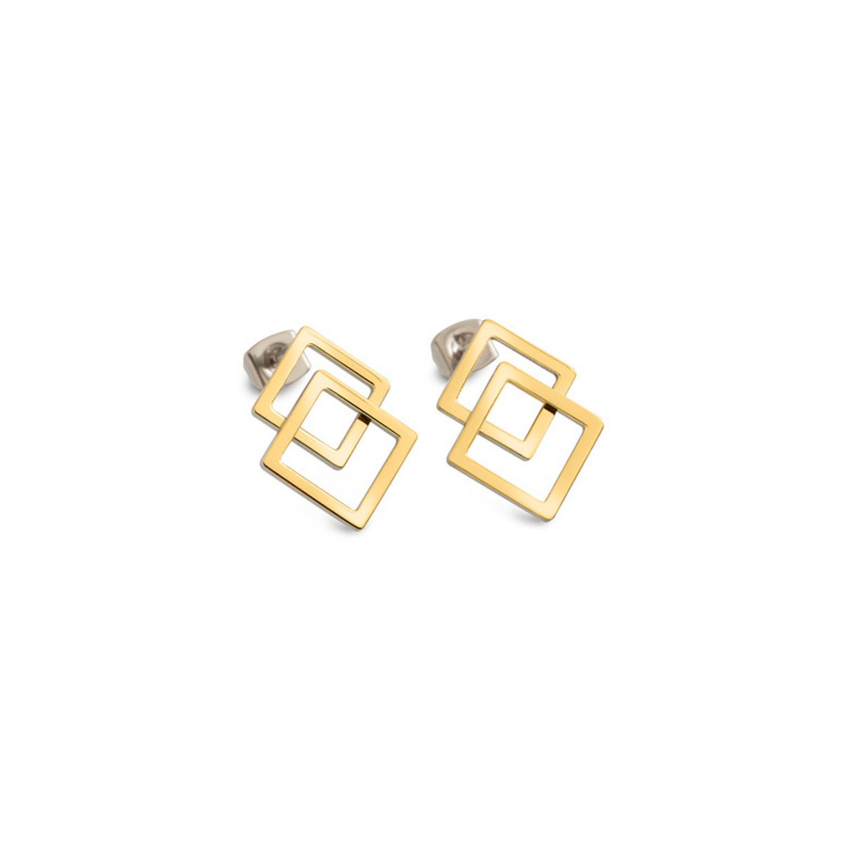 Prix unitaire par05025-02 - Boccia - Boucles d'Oreilles - Dame - Titane Plaqué Or Jaune - Doré - Carrés - 20x15mm