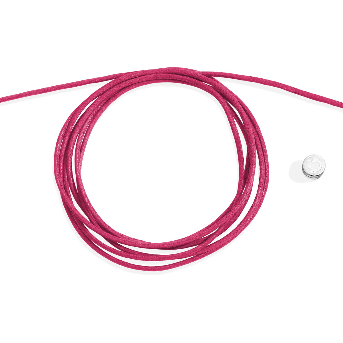 Cordon en coton fin fuchsia. Sceau en argent 925.