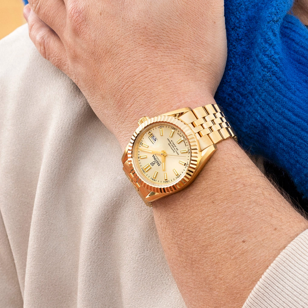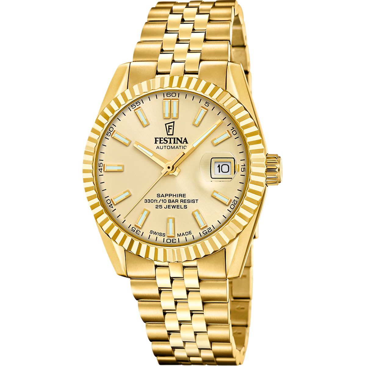 Prix unitaire parF20092/2 - Montre Homme - Swiss Made - Bracelet Acier Doré - Cadran doré - Trotteuse - Verre Saphir - Etanche 10atm - Diamètre 41mm - Mouvement Automatique Suisse - Garantie : 2ans