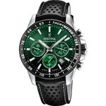 Prix unitaire parF20561/5 - Montre Homme - Timeless Chrono - Chronographe - Bracelet Cuir Noir - Cadran Vert - Acier Inoxydable - Verre Minéral - Etanche 10atm - Diamètre 45mm - Mouvement Quartz - Garantie : 2ans