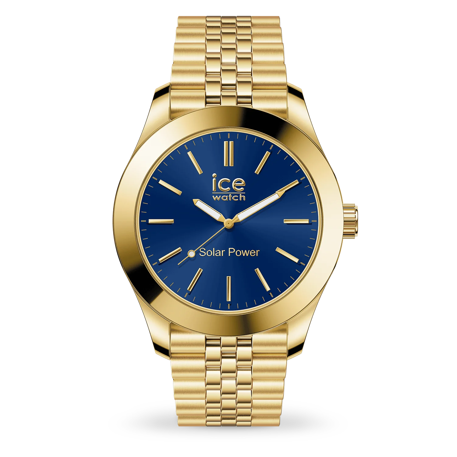 Prix unitaire par023798 - Montre mixte - Ice Steel Solar - Gold Blue - Doré & bleu - Taille M - Bracelet acier inoxydable doré - Verre minéral - Etanche 10atm - Garantie 2ans - Mouvement Miyota solaire