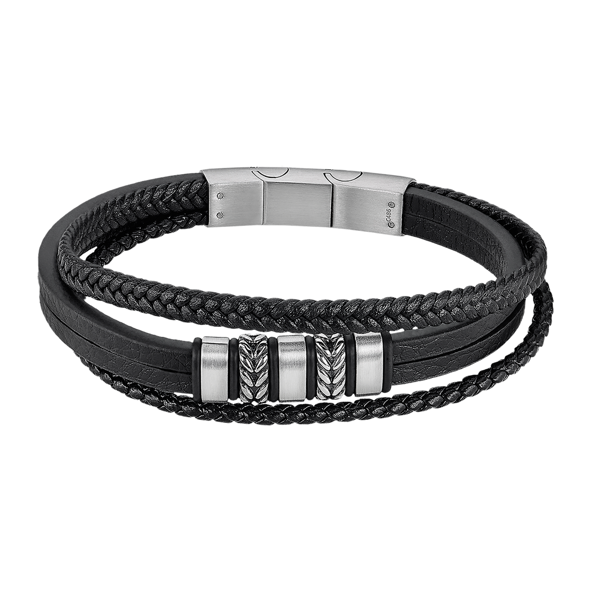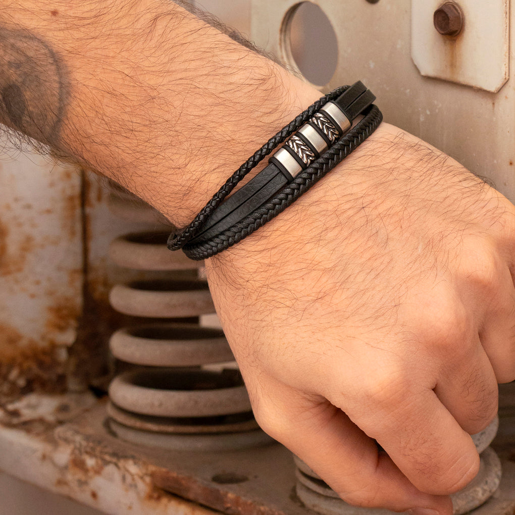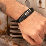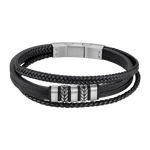 Prix unitaire parLS259021 - Lotus - Bracelet Cuir Homme - Cuir & Acier Inoxydable - Noir - Multi-rangs - Iron Road