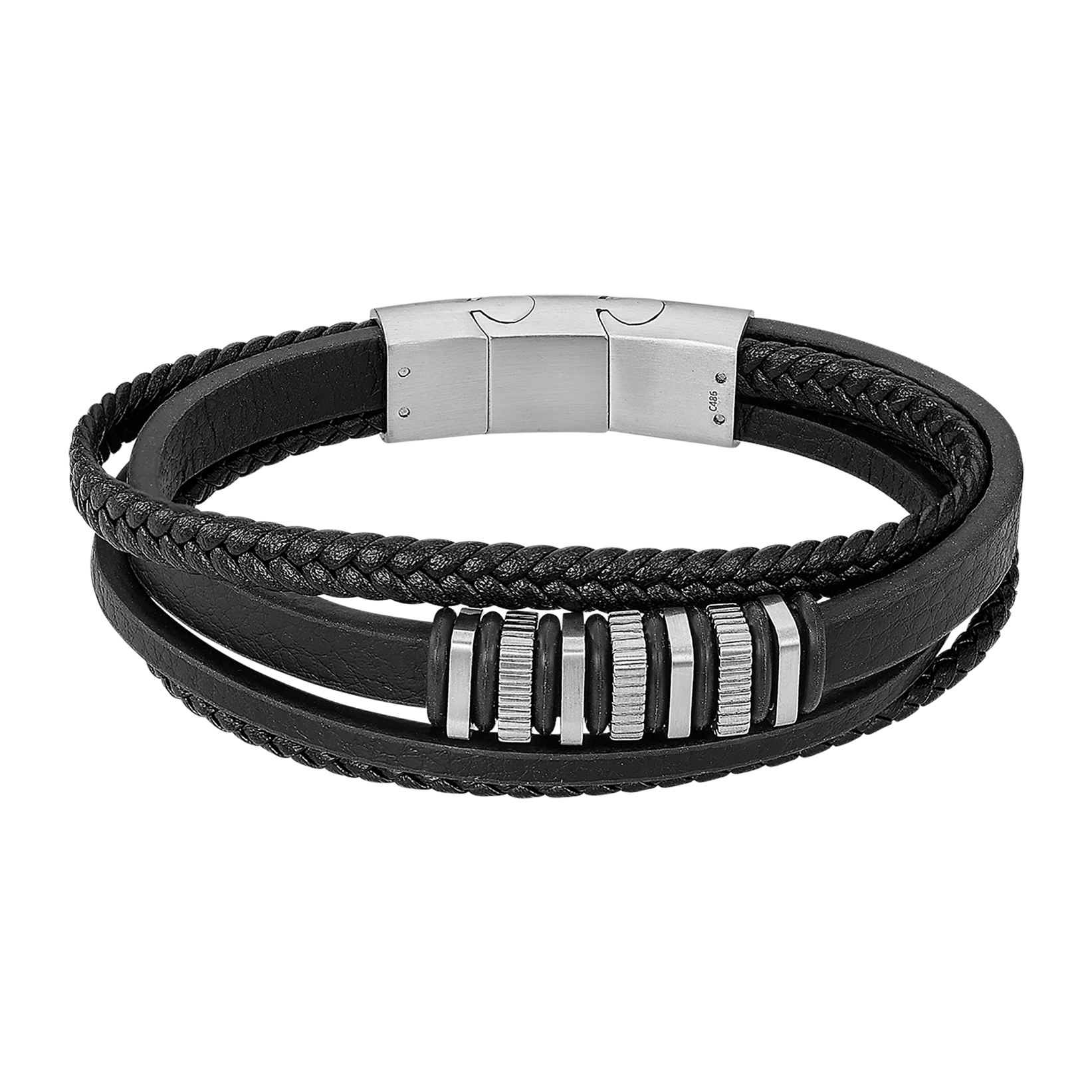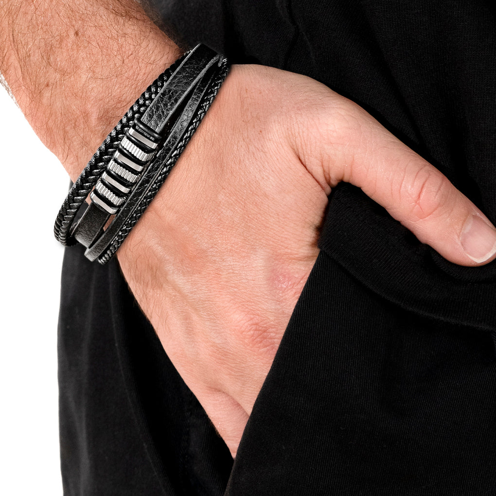 Prix unitaire parLS259121 - Lotus - Bracelet Cuir Homme - Cuir & Acier Inoxydable - Noir - Multi-rangs - Iron Road