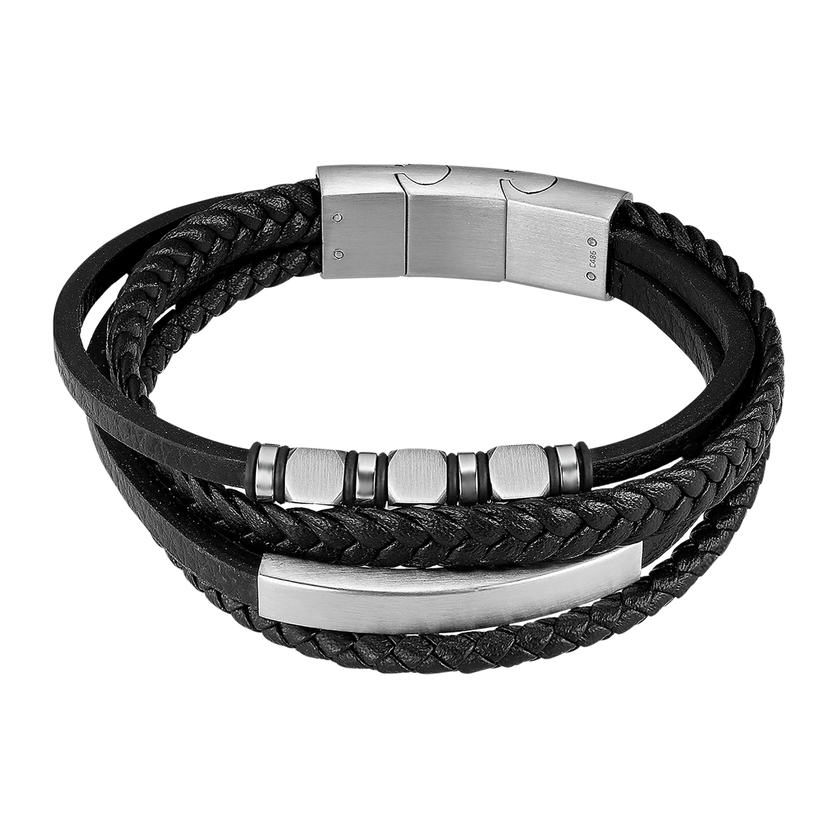 Prix unitaire parLS259321 - Lotus - Bracelet Cuir Homme - Cuir & Acier Inoxydable - Noir - Multi-rangs - Iron Road