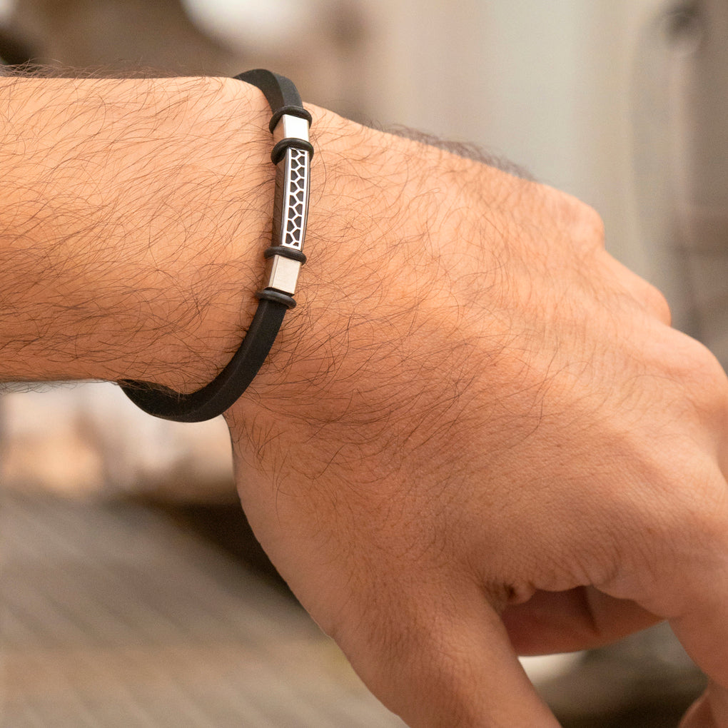 Prix unitaire parLS253723 - Lotus - Bracelet PVC Homme - Noir - PVC & Acier Inoxydable - Silent Impact