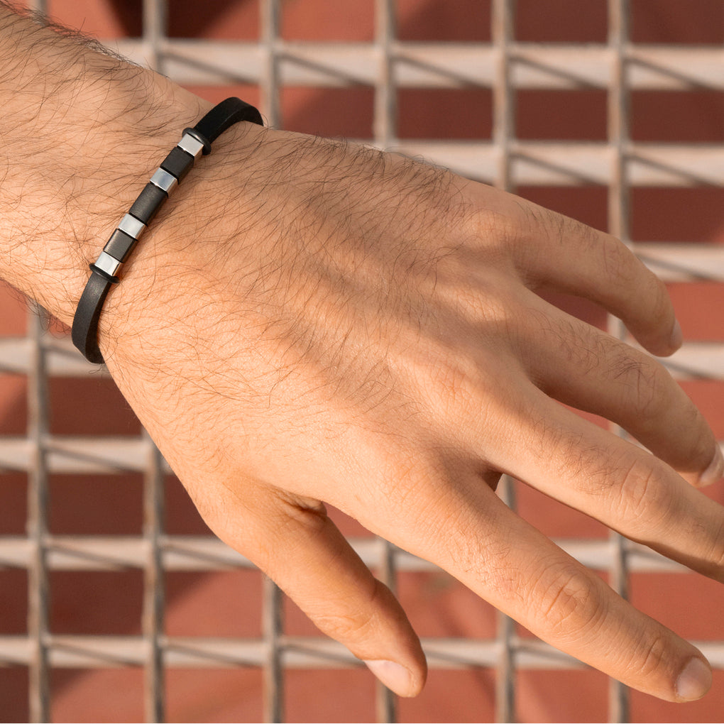Prix unitaire parLS253823 - Lotus - Bracelet PVC Homme - Noir - PVC & Acier Inoxydable - Silent Impact