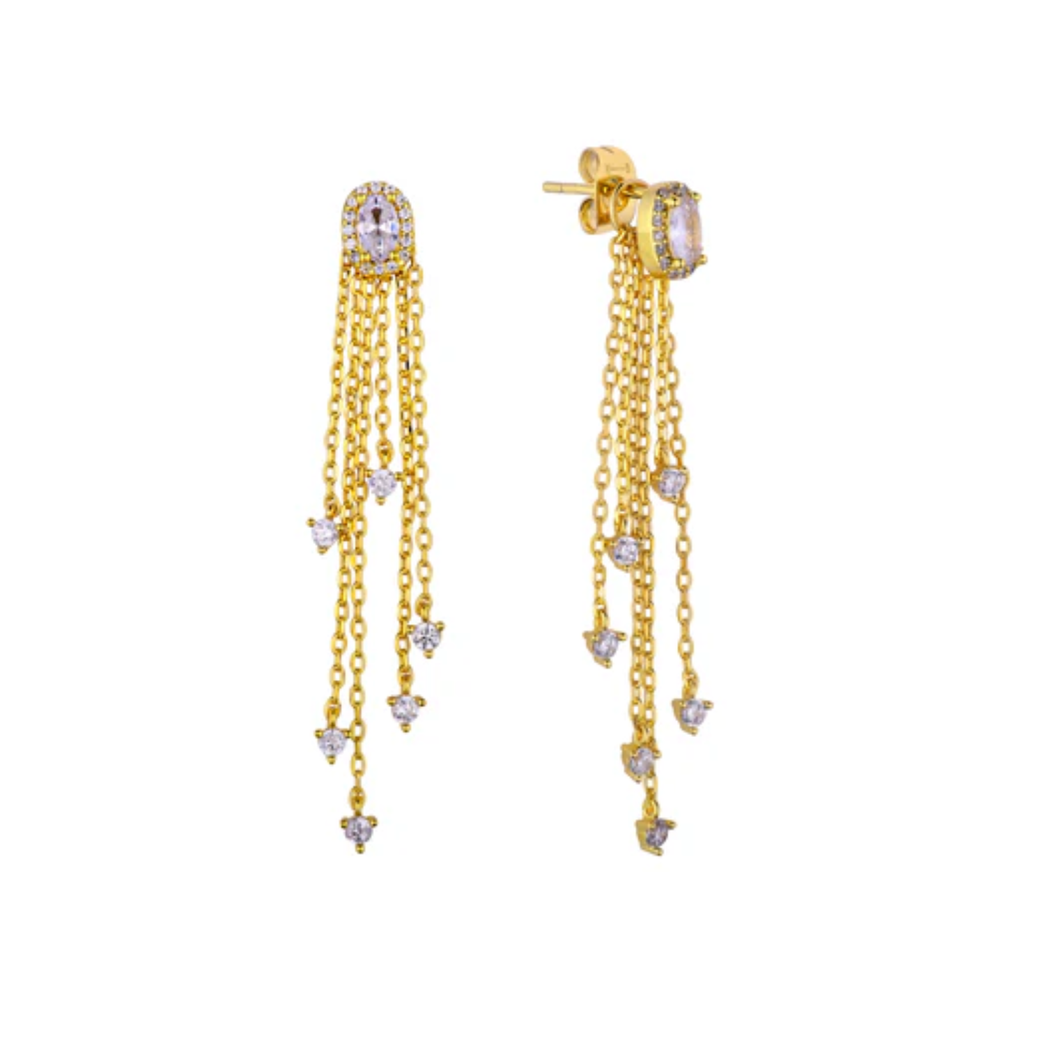 Les boucles d’oreilles DYNASTY SIENNA de MYA—BAY, dorées à l’or fin recyclé 24 carats, sont un vrai bijou caméléon ! Portez-les en total look avec pierre et chaînes pendantes, ou amusez-vous à ne garder que la pierre ou seulement les chaînes. Style modulable = style gagnant.