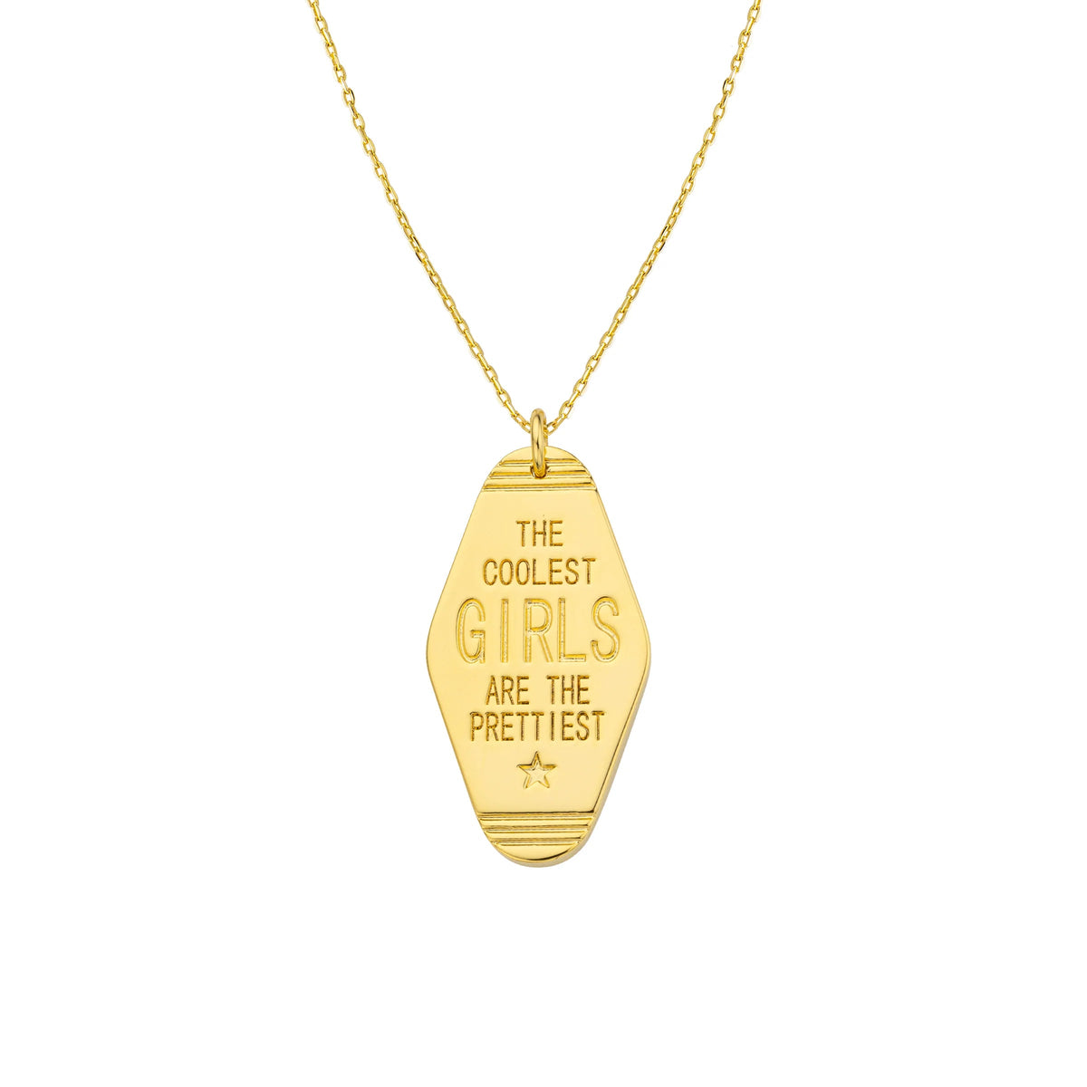 Le collier COOLEST HOTEL de MYA—BAY s’inspire des anciens porte-clés d’hôtels américains, ces objets iconiques chargés de souvenirs et d’attitude. Son pendentif affiche fièrement la gravure “The coolest girls are the prettiest”, un message fort et assumé, à porter comme un mantra. Monté sur une chaîne élégante, ce collier apporte une touche cool et lifestyle à tous les looks.