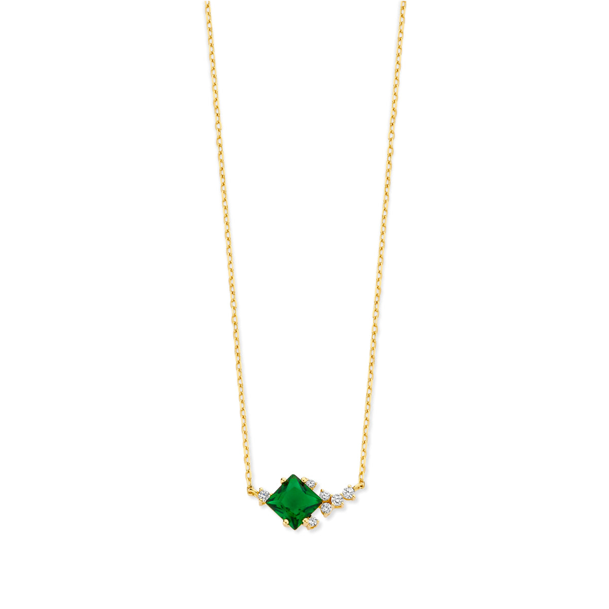 Collier en argent plaqué or jaune, pierre centrale verte et oxydes de zirconium.