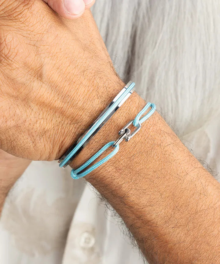 Prix unitaire parP53-1612000 - Pig&Hen - Bracelet Corde Homme - Daunting Dean - Summer Blue & Silver - Bleu ciel & Argenté - Ajustable