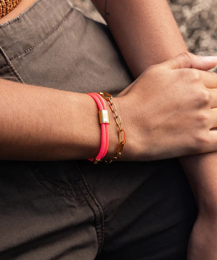 Prix unitaire parW01-349000 - Pig&Hen - Bracelet corde dame - Lewis - Neon Pink & Gold - Rose fluo & doré - Ajustable