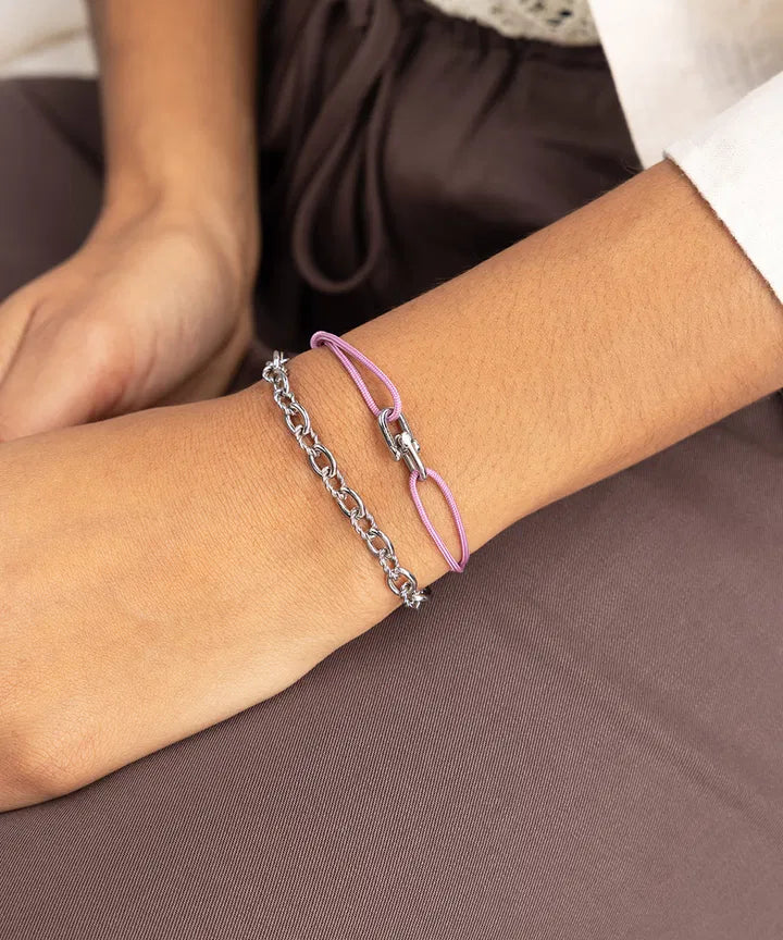Prix unitaire parW18-166200 - Pig&Hen - Bracelet corde dame - Mia - Lilac Purple Silver - Lilas & Argenté - Ajustable