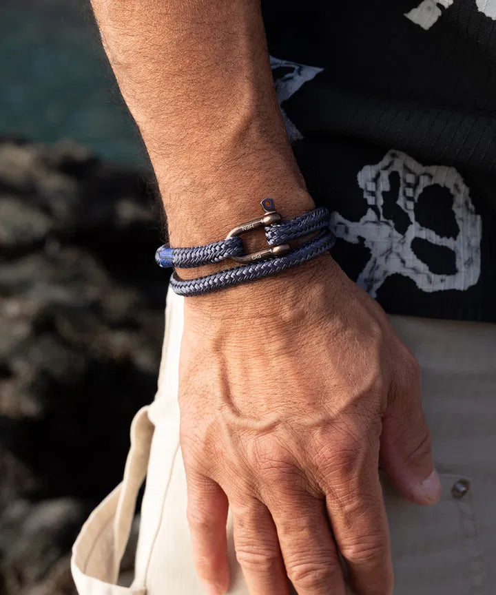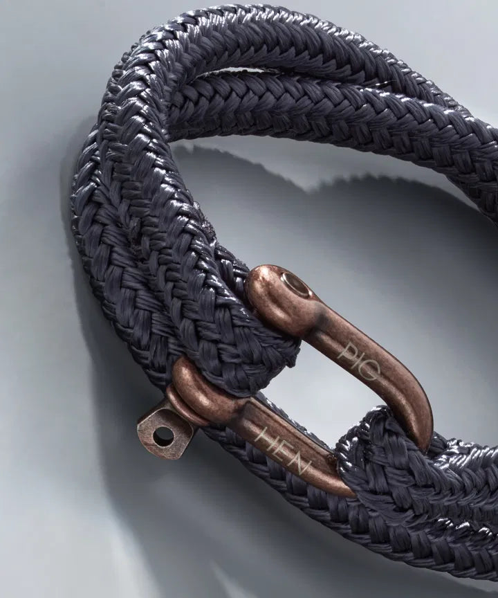 Salty Steve présente notre manille classique en D au centre du bracelet, ce qui lui confère un aspect subtil mais accrocheur. La corde est disponible dans une gamme de couleurs et le fermoir en acier inoxydable est gravé du logo Pig & Hen. Fabriqué à la main avec une attention méticuleuse aux détails, ce bracelet est conçu pour refléter la robustesse et la résilience du style de vie marin dont il s'inspire. Est résistant à l'usure et ne décolore pas.